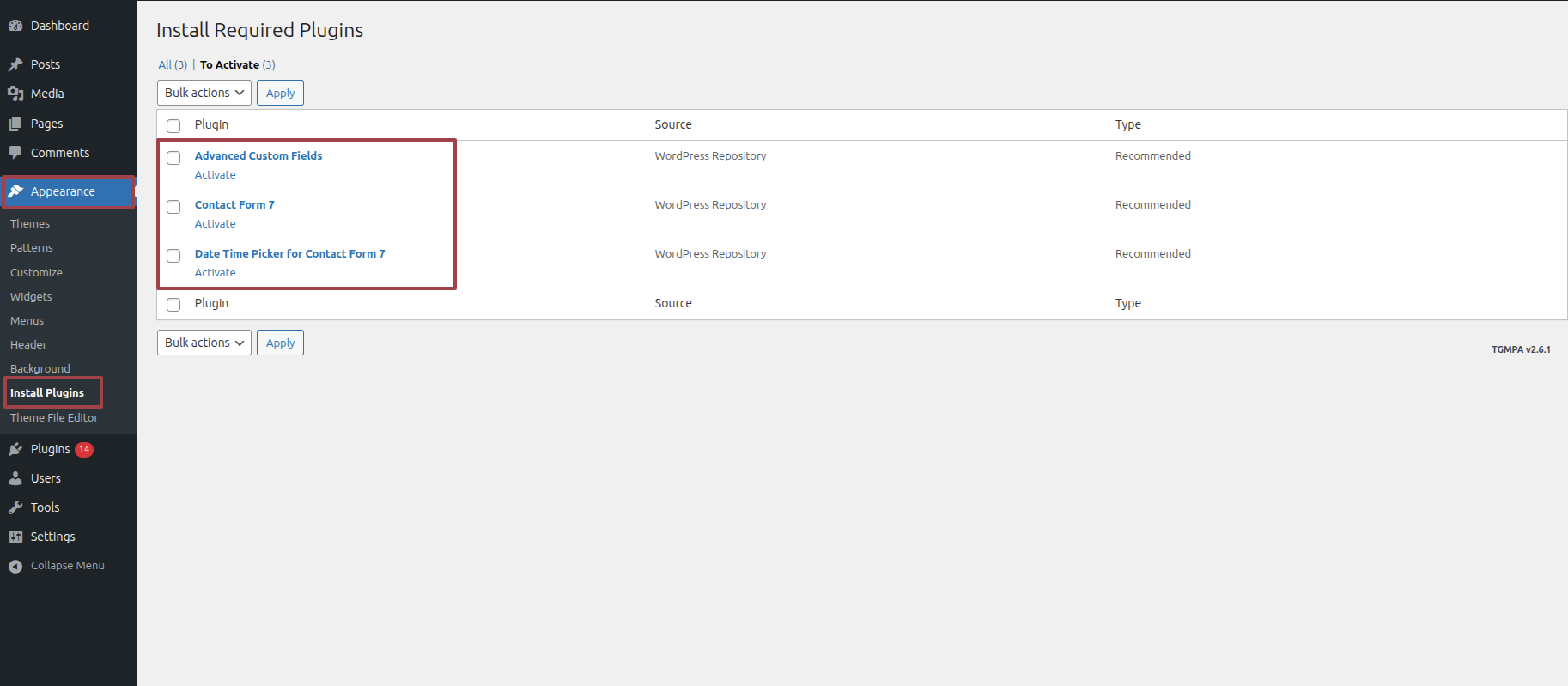 Afterwards logging in, Start the Appearance --->Themes and activate Total on your WordPress website.