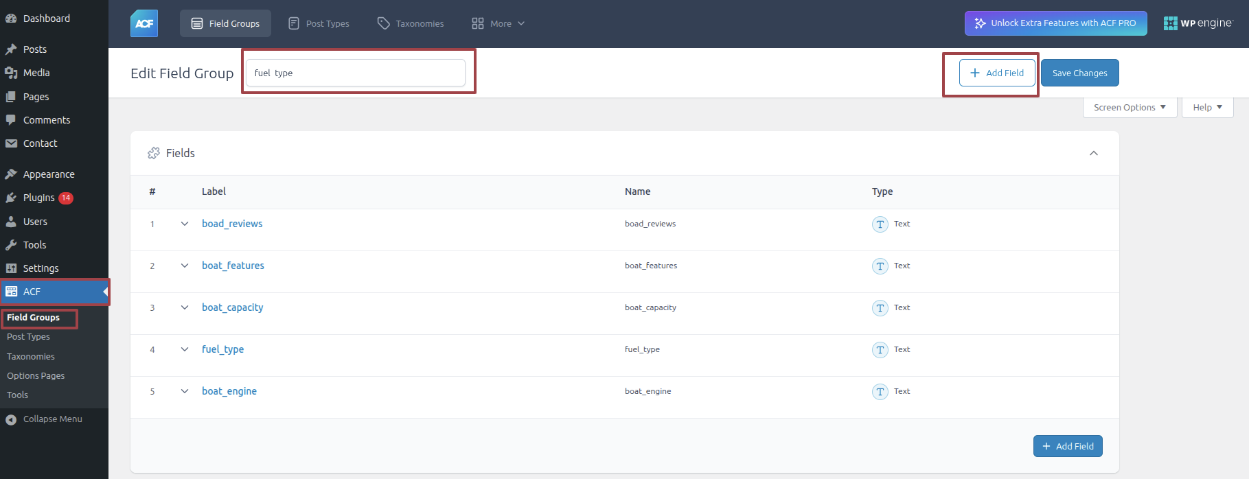 Get started by Start the Dashboard--->ACF -->Field Groups--->Add New .