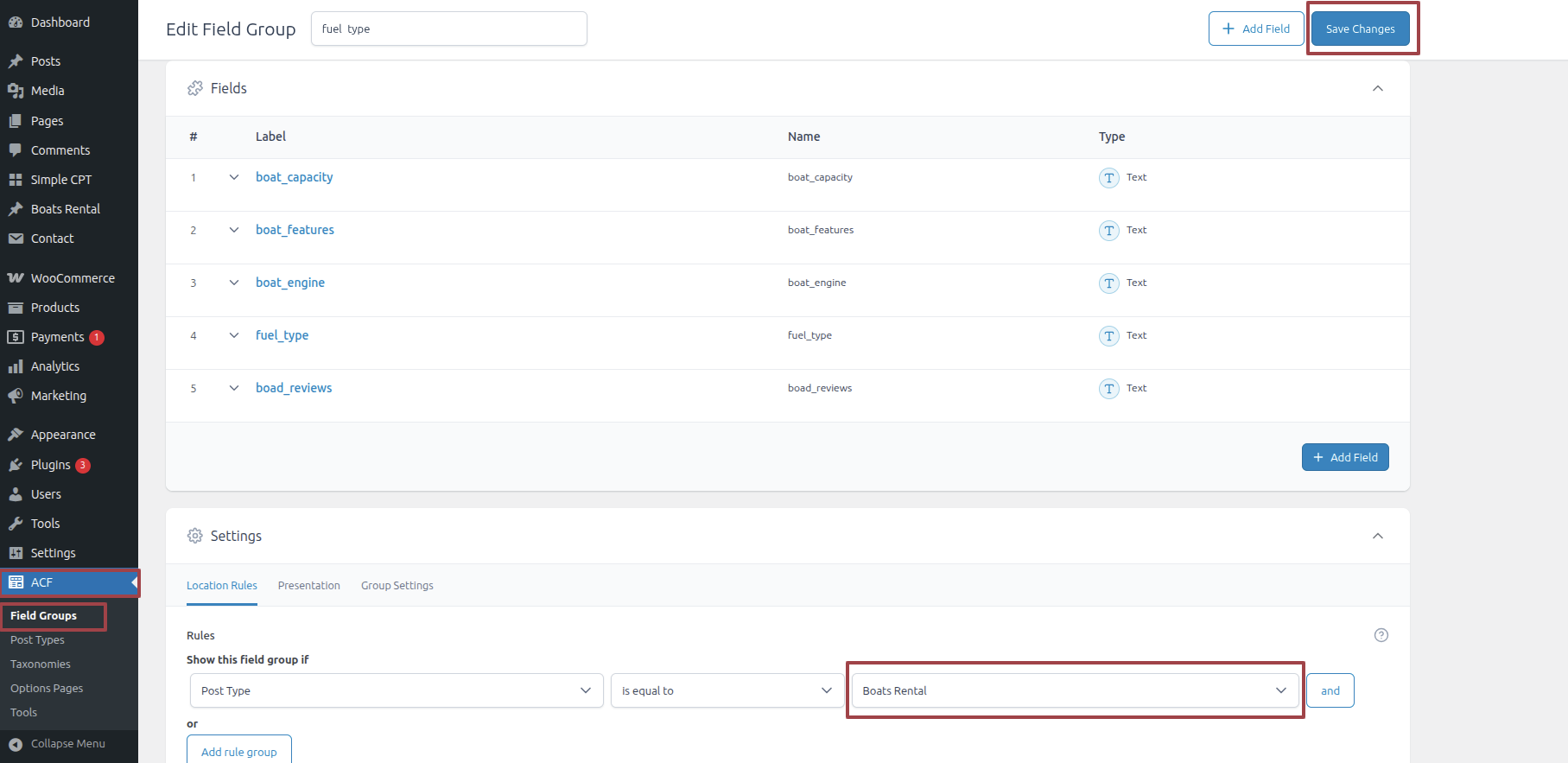 Get started by Start the Dashboard--->ACF -->Field Groups--->Settings .
