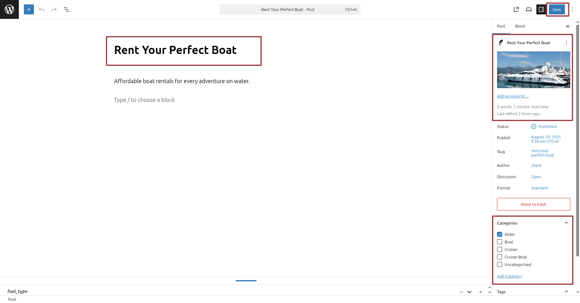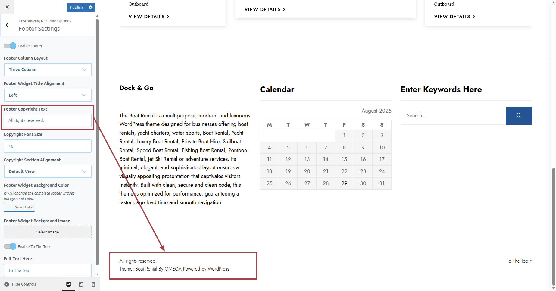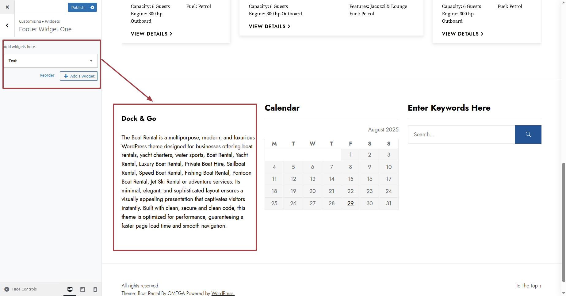 Get started by Start the Appearance--->Customize --> Frontpage Settings--->Explore Our Boats Settings .