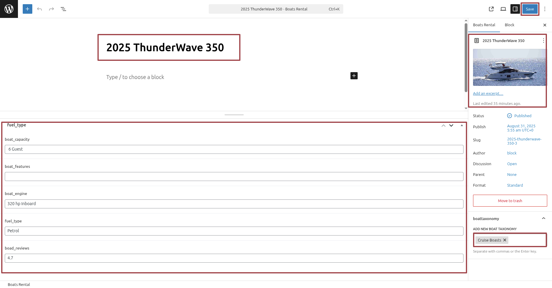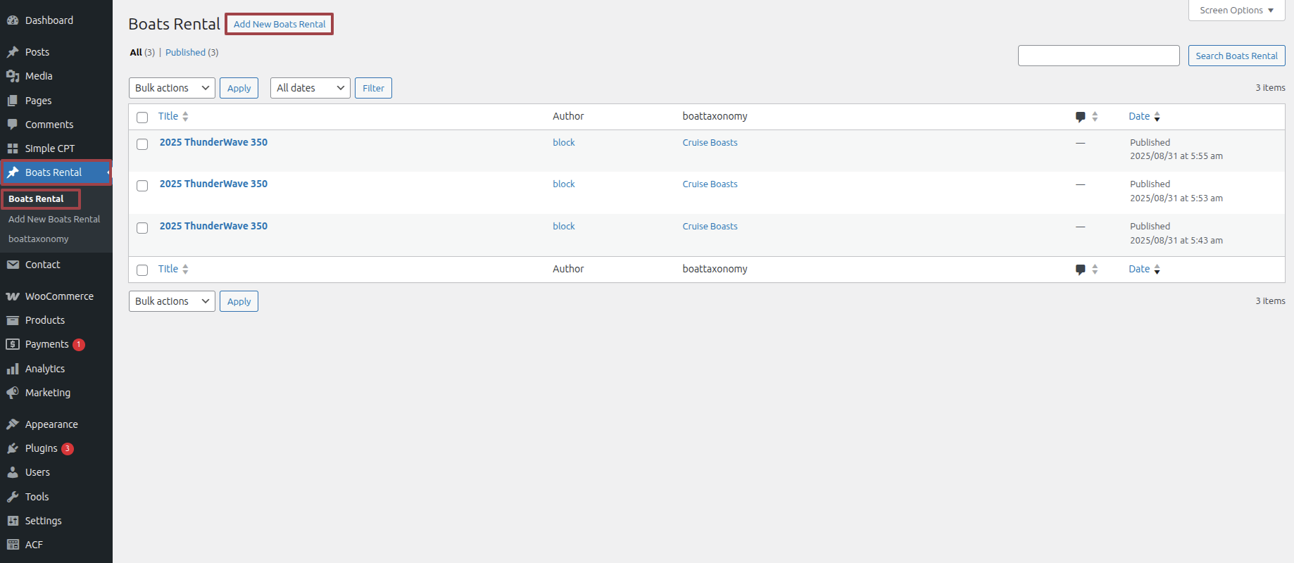 Access the following menus: Dashboard---> Boats Rental -->Add New Boats Rental.