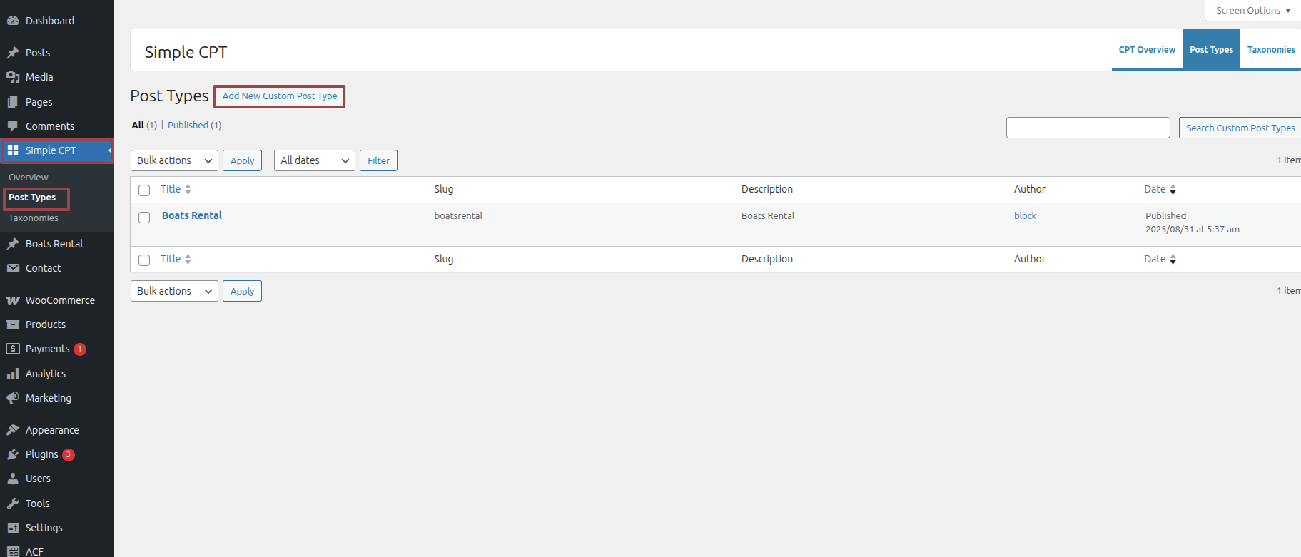 Get started by Start the Dashboard--->Simple CPT -->Posts Types--->Add New Custom Posts Type .