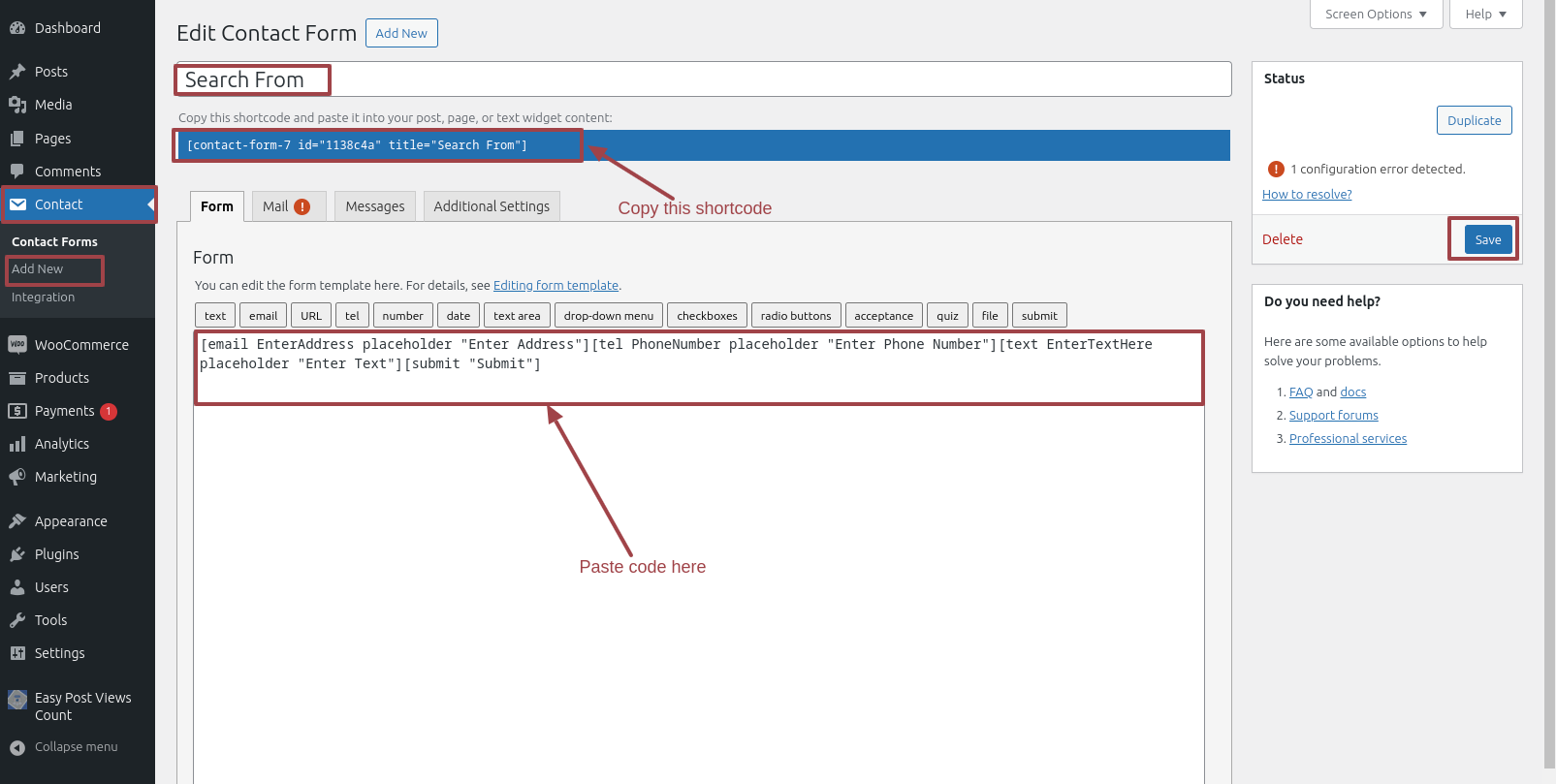 Then, add a heading such as Contact Form, or choose a heading that suits your needs.