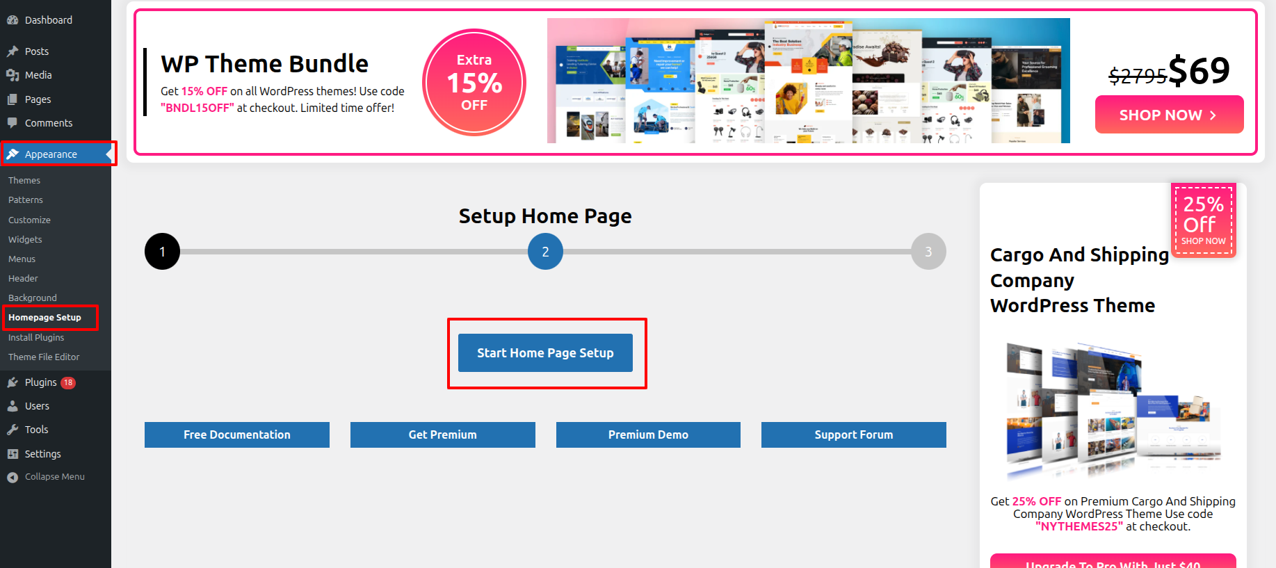 Access the Homepage Setup by Start the Dashbord---> Appearance -->Homepage Setup---> an click on Start Home Page Setup.