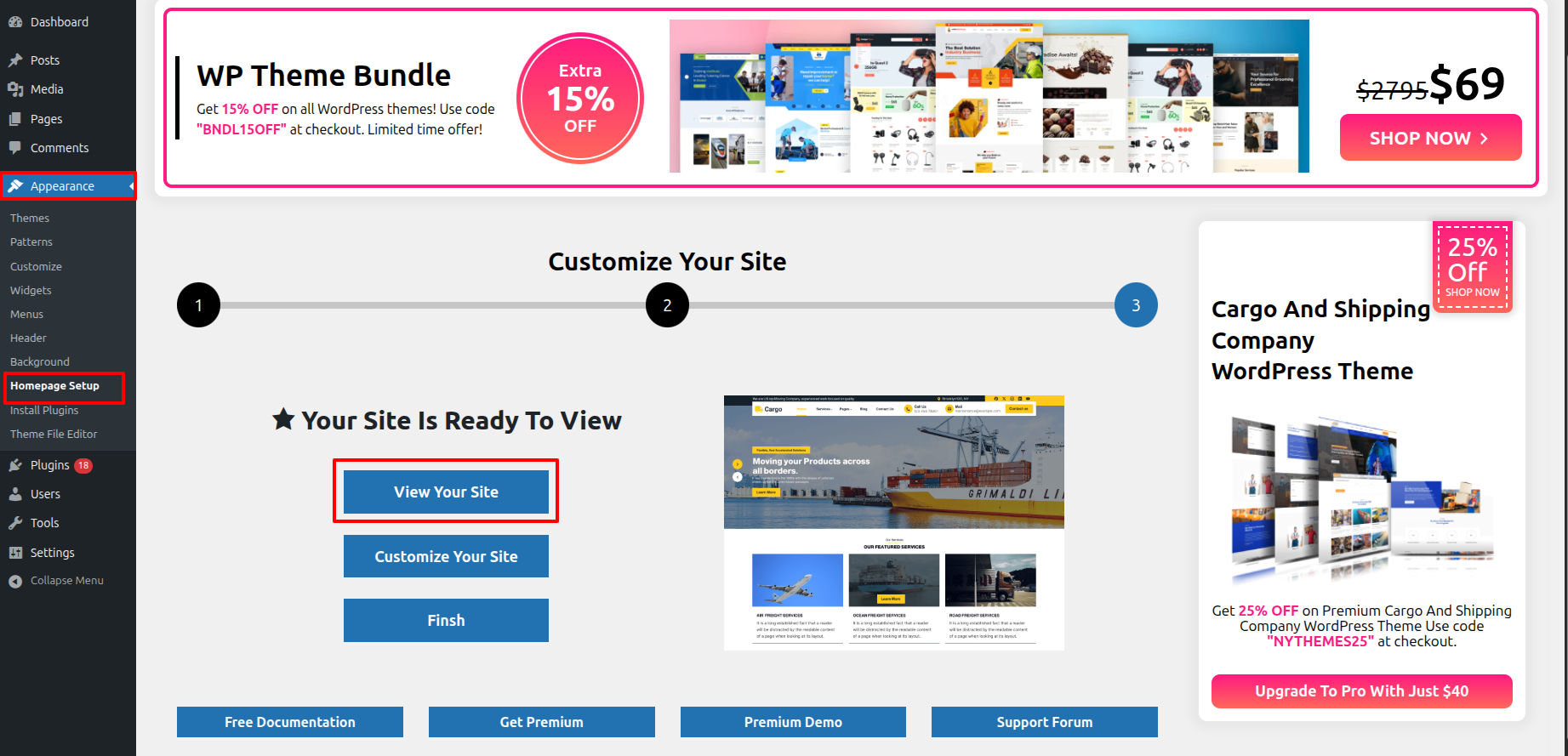 Access the Homepage Setup by Start the Dashbord---> Appearance -->Homepage Setup---> an click on View Your Site.