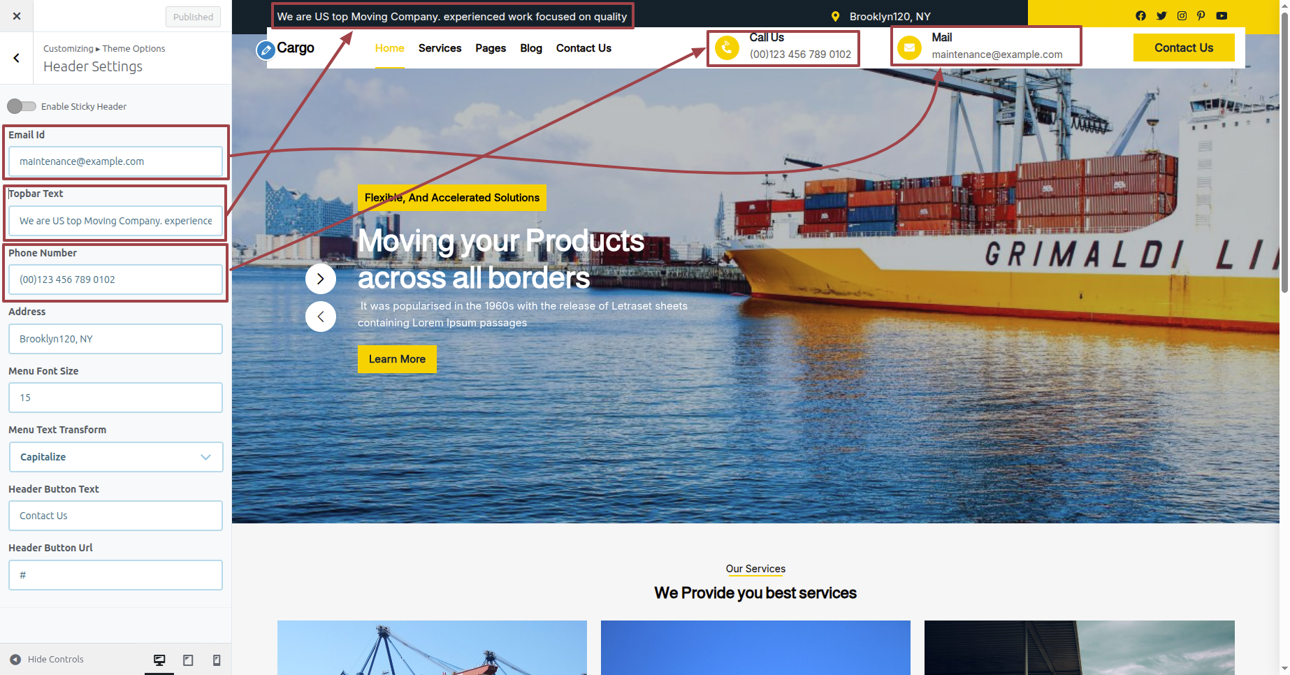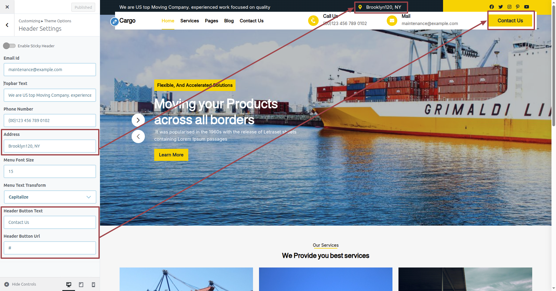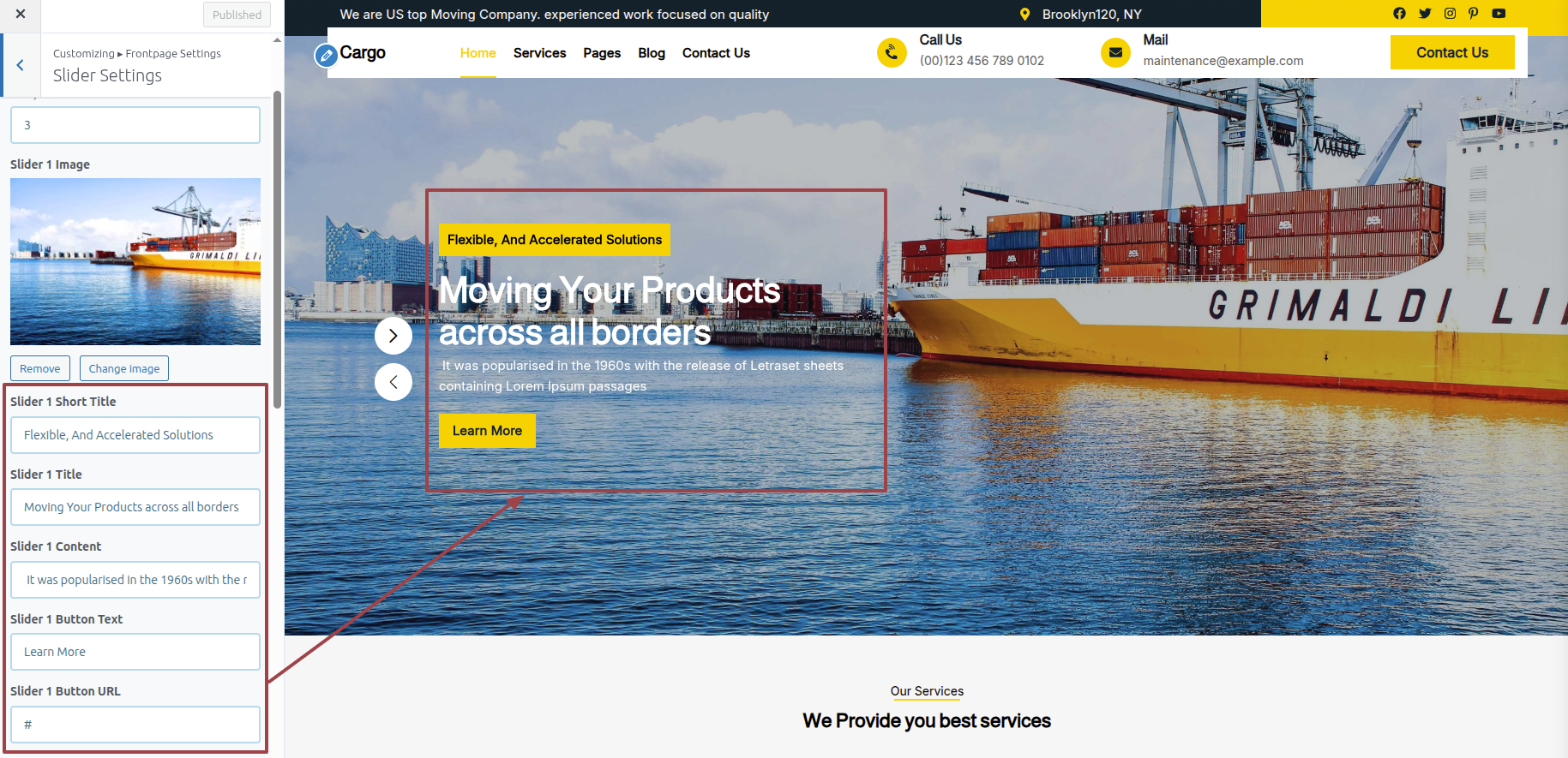 Get started by Start the Appearance--->Customize --> Frontpage Settings--->Services Settings .