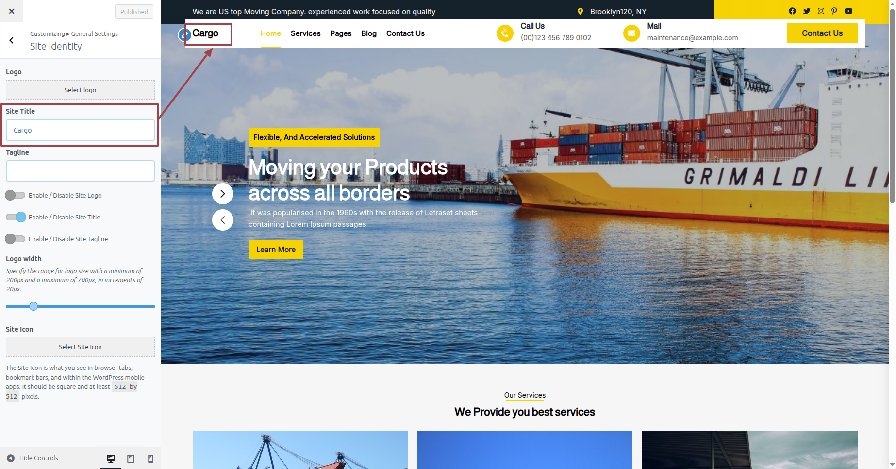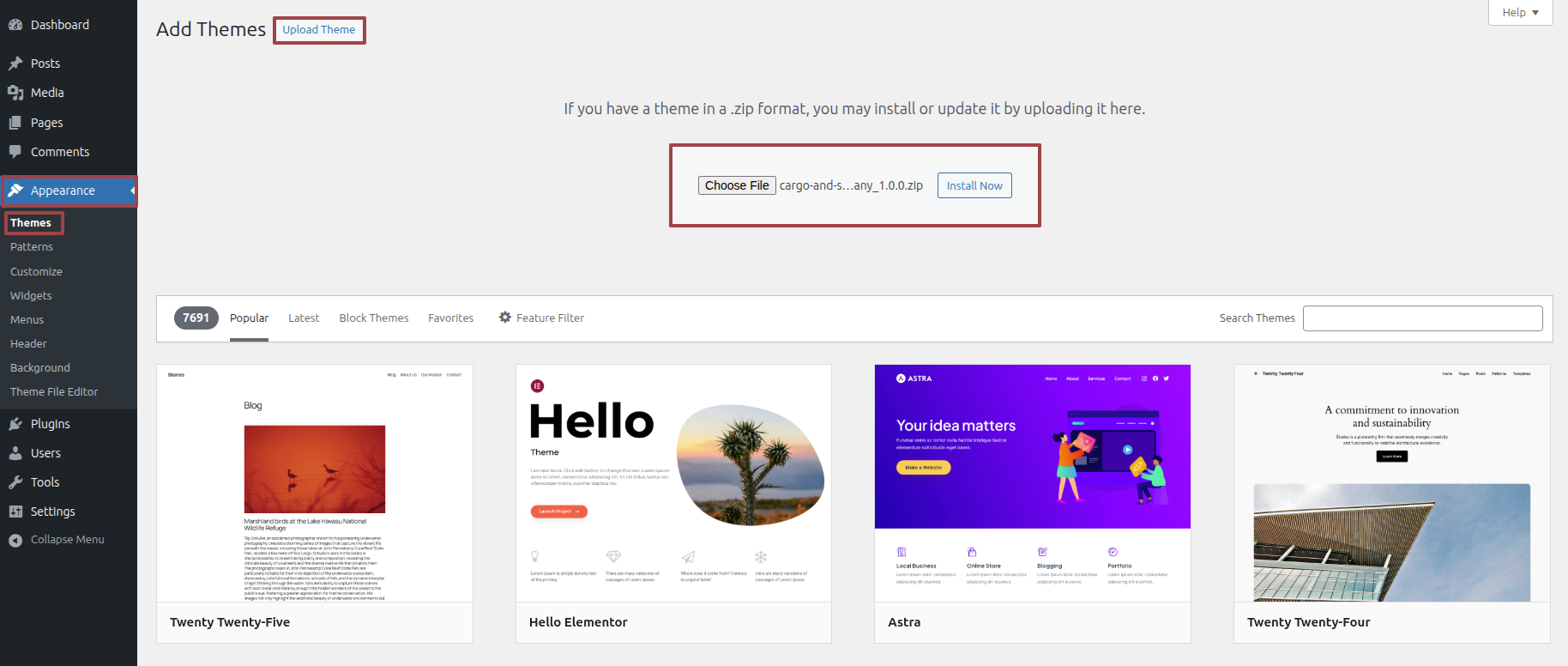 4. Select your cargo-and-shipping-company.zip theme through choice of the Browse button, then click the Install Now button.