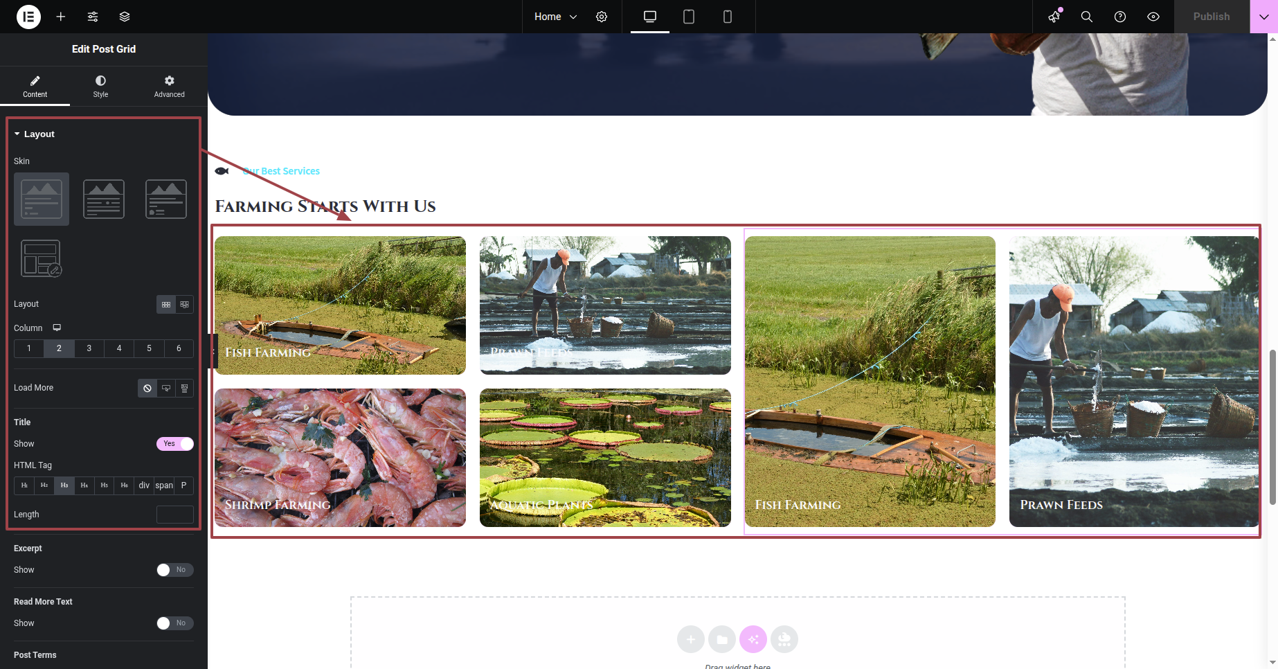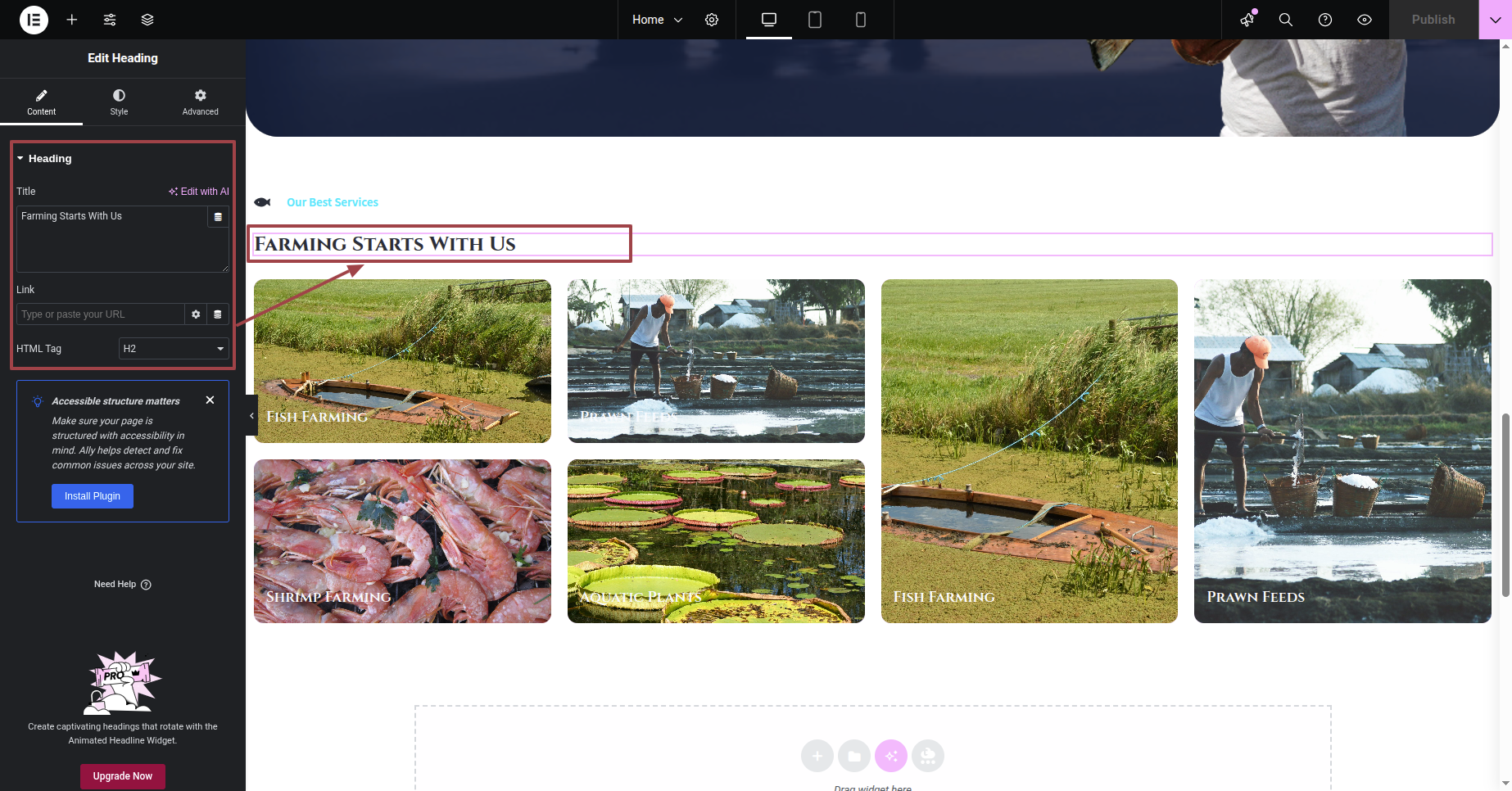 You can make changes to our services in Elementor.