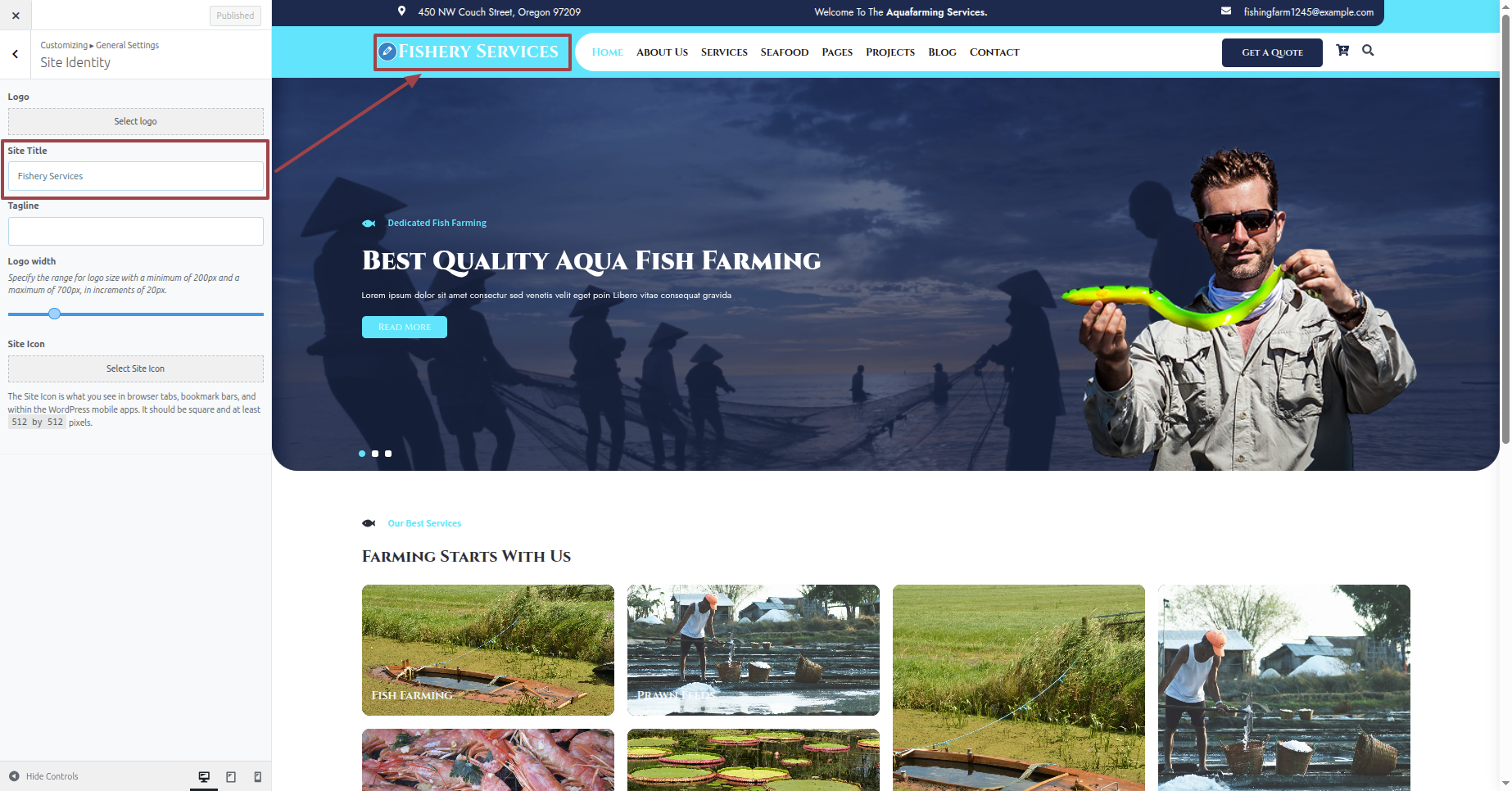 Select Appearance---> Customize -->General Settings--> Site Identity.