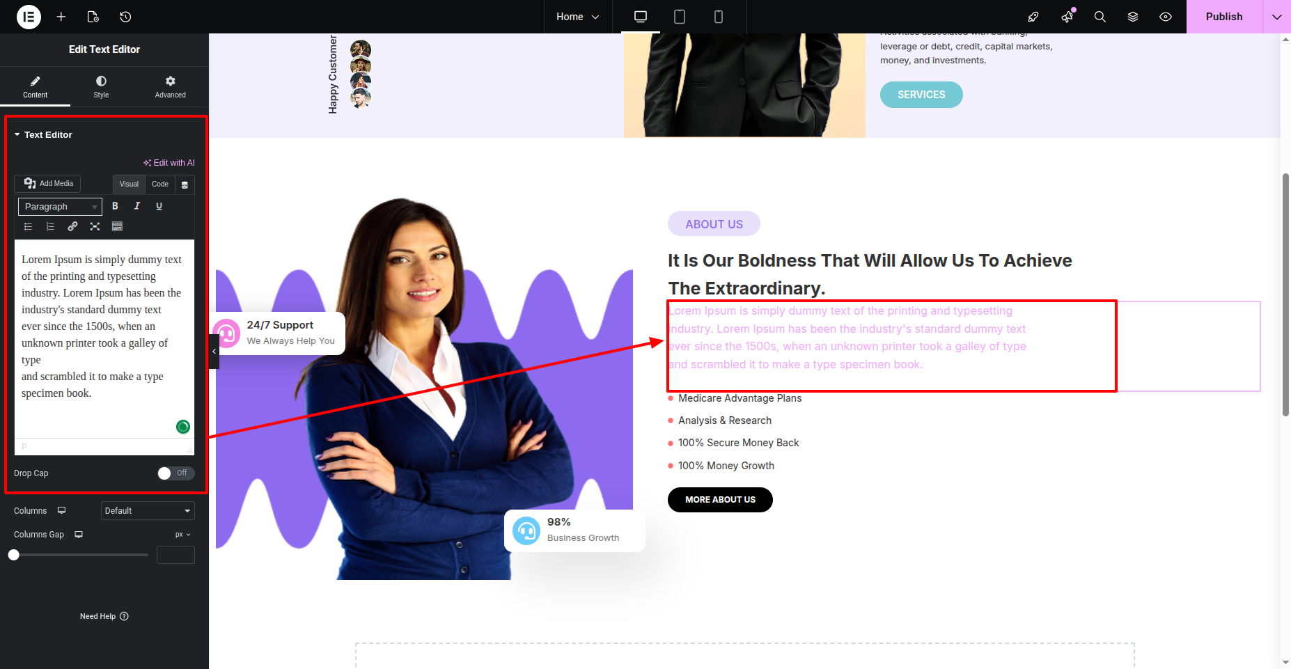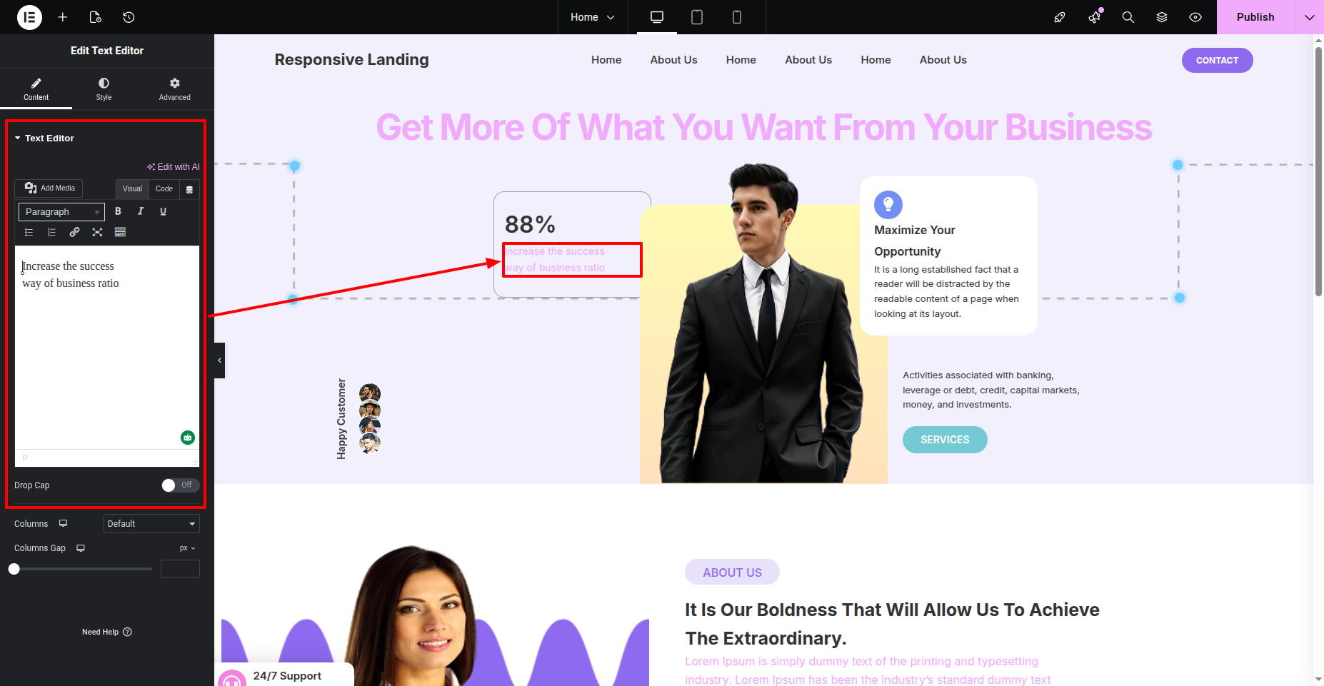 You can make changes to Banner in Elementor.