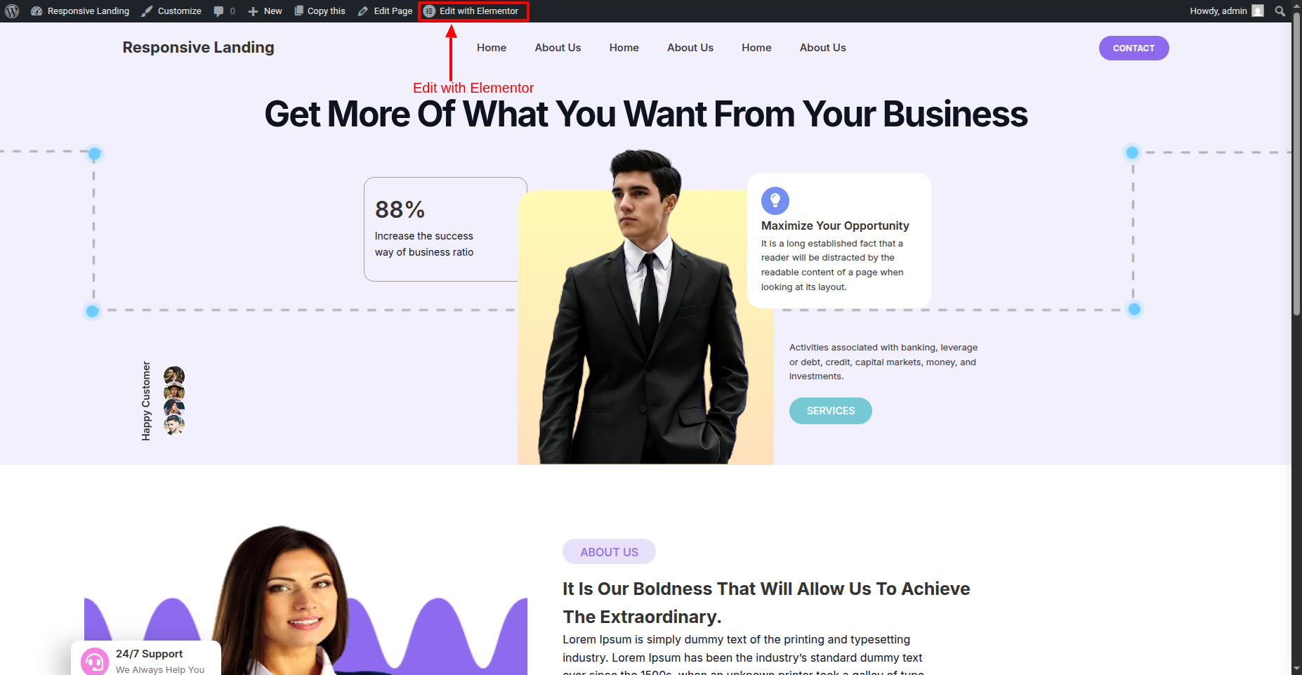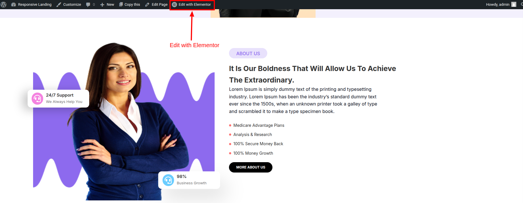 Get started by Start the Dashboard--->Visit Site --> Edit With Elementor .