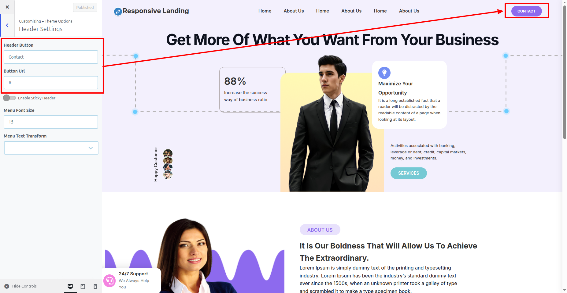 Access the Header option and Header settings by Start the Appearance---> Customize -->Theme Option--->Header Settings.